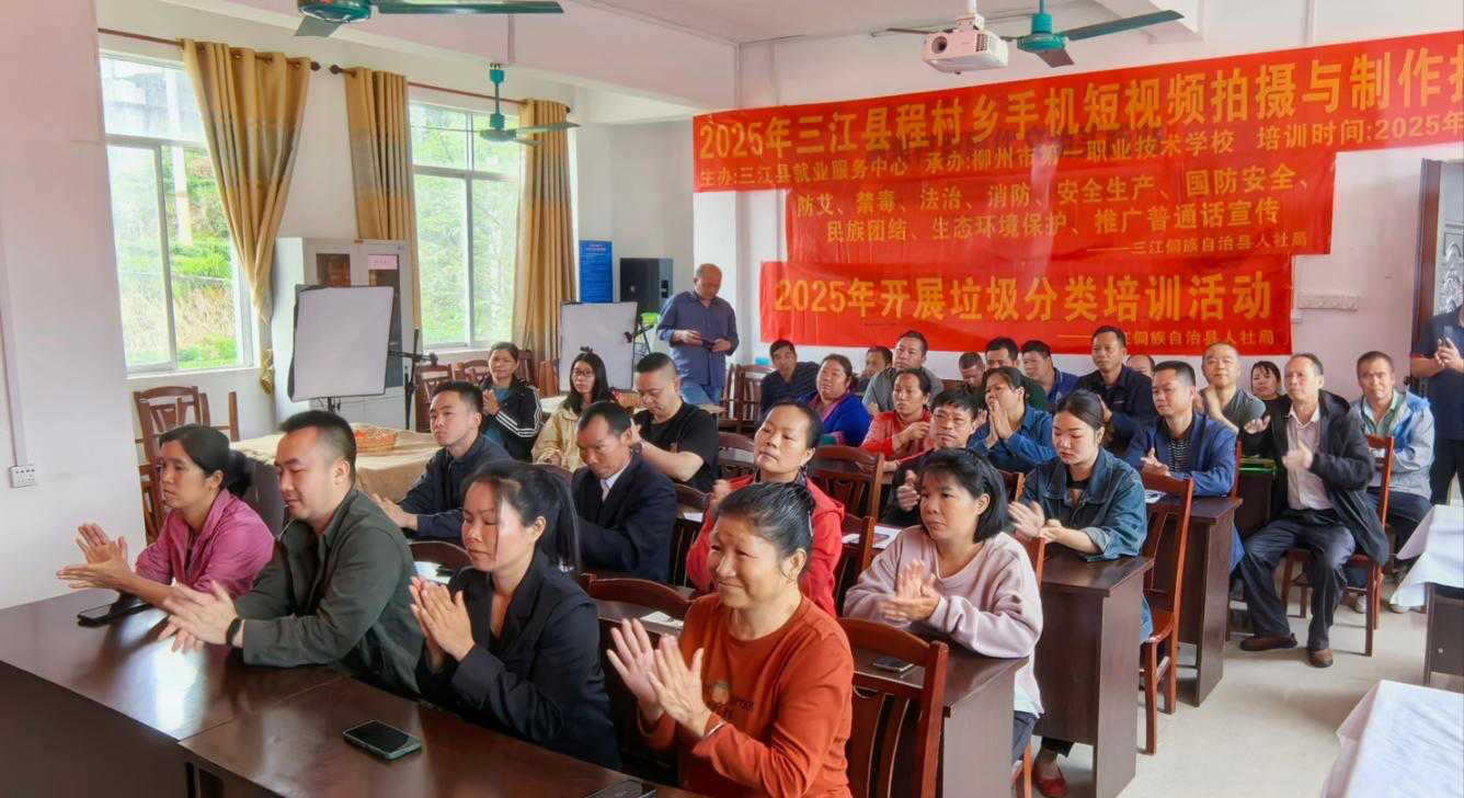 为培育新型农村数字人才,推动短视频+乡村振兴融合发展,,三江侗族自治人力资源和社会保障在程村乡泗里村举办2025年手机短视频拍摄与制作技能培训班。为期5天的培训吸引了50名来短视剪辑爱好者参加。