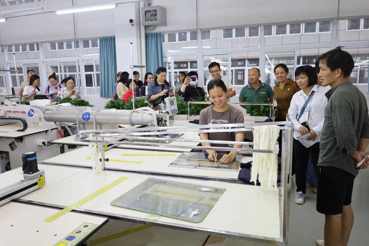 当天下午,学员们来到藤县永驹服装有限公司,深入智能化制衣车间,近距离观摩从面料裁剪、智能缝制到成品检验的全流程生产线。