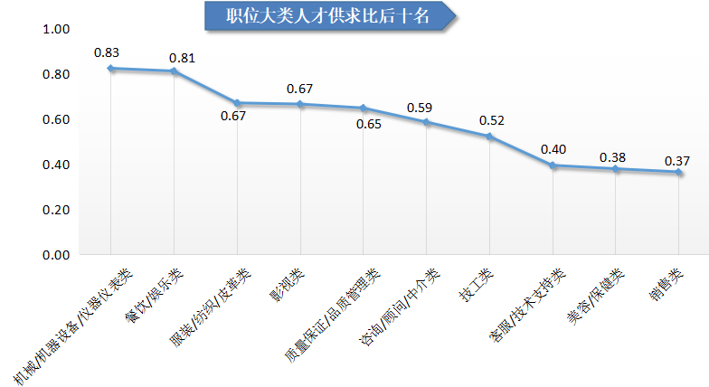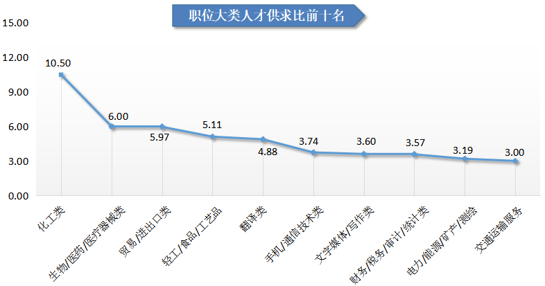 近十年人才供求比变化曲线图如下: