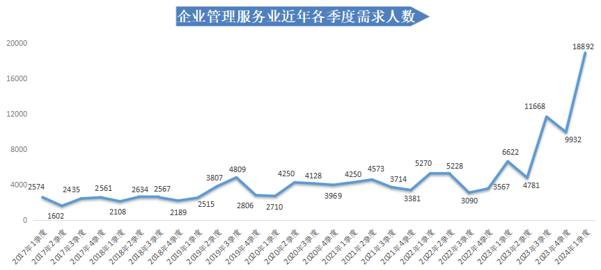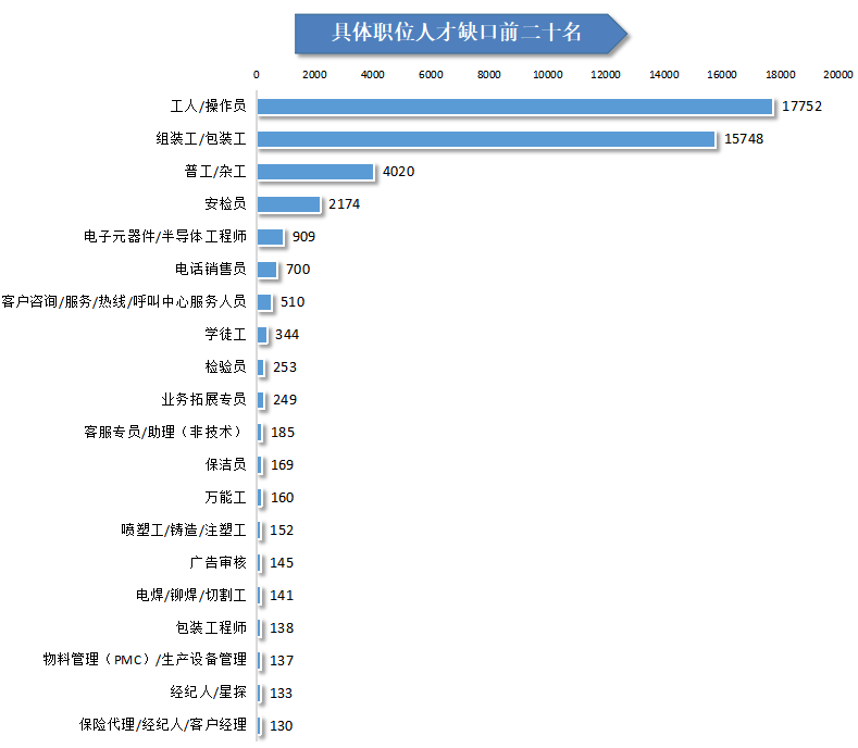 从具体行业看,企业管理服务业、职业中介服务业、电子技术/半导体/集成线路业、城市公共交通业、装卸搬运和其他运输服务业等具体行业的人才需求量均实现大幅增长。