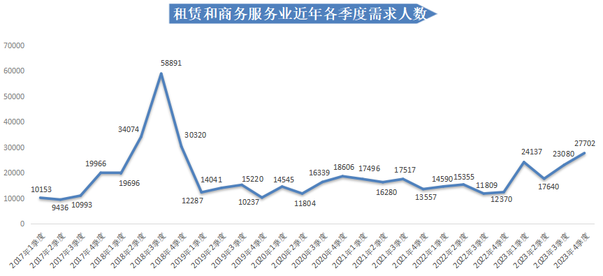在人才需求方面,2023年第四季度广西人才网中人才需求量出现回升态势,有招聘需求的用人单位需求人才数为84876人,同比增长28.85%,环比增长4.09%。