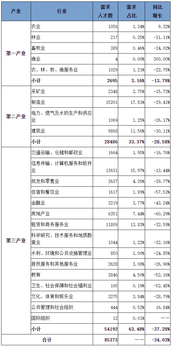 具体行业人才需求分布见下表:
