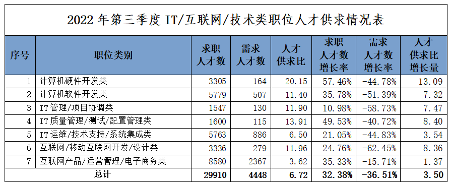 5.IT/互联网/技术类职位人才需求下降明显