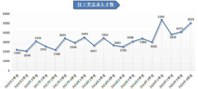2.技工类职位人才需求回升