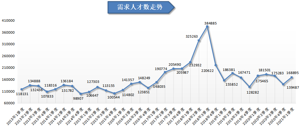 2021年第一季度,通过广西人才网招聘人才的用人单位(简称用人单位,下同)数量为12691家,比上年同期微增0.66%;需求人才数为168895人,比上年同期下滑3.74%;求职人才数为346089人,与上年同期相比增长24.03%;总人才供求比为2.05(即人才需求人数或职位数为1时,人才供给或求职人才数为2.05,下同),比上年同期的1.59增加0.46,比上季度的2.23减少0.18,就业压力仍较大。