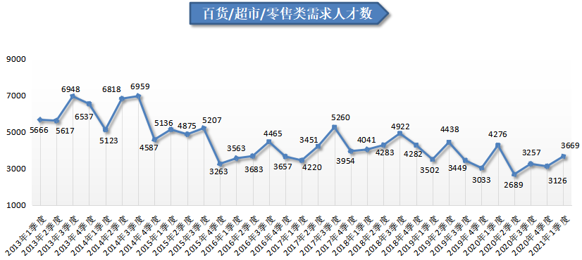 在人才需求领域,有招聘需求的用人单位数量有所回升,比上年同期微增0.66%,但用人单位平均吸纳人才数较上年同期略有下降,整体需求人才数同比下滑3.74%。