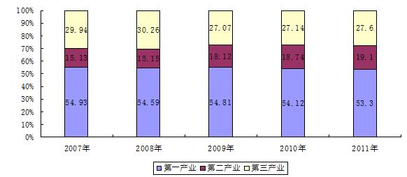图1 近五年全区就业人员产业构成情况