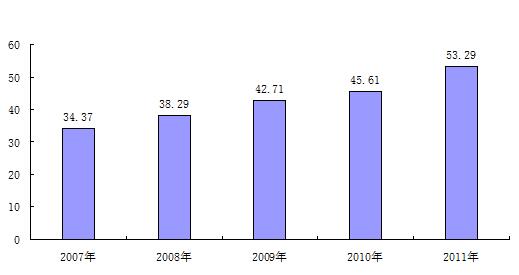 2011年全区城镇单位在岗职工年平均工资为34178元,与2010年的31842元相比,增加了2336元,同比增长7.3%。