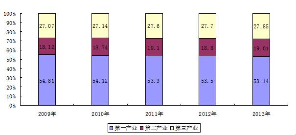 近五年全区就业人员产业构成情况