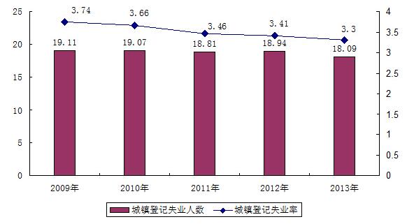 近五年城镇登记失业人数及登记失业率