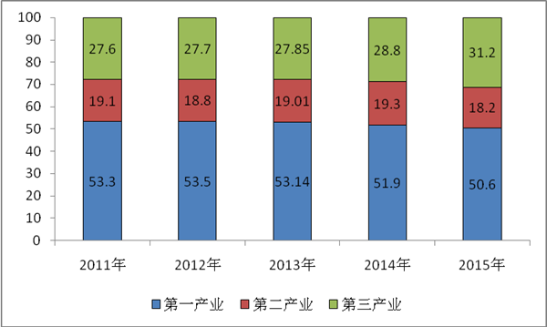 图1 近五年全区就业人员产业构成情况