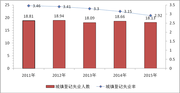 图4 近五年城镇登记失业人数及登记失业率