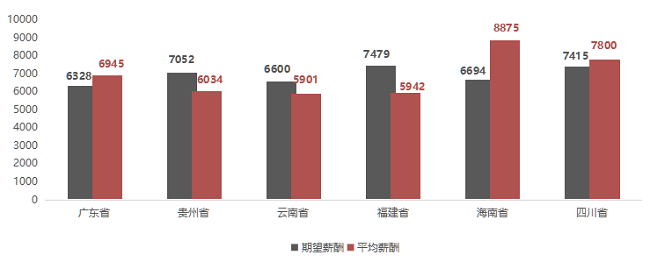 注4:职位平均薪酬指的是所属职位类别中用人单位发布职位的薪酬样本加权平均值,不代表单个职位的实际薪酬,例如高级管理类职位平均薪酬为10798元/月,但其有很多副总以上级别的高薪职位薪酬更高。期望薪酬指的是求职者期望从事职位类别的薪酬样本加权平均值。