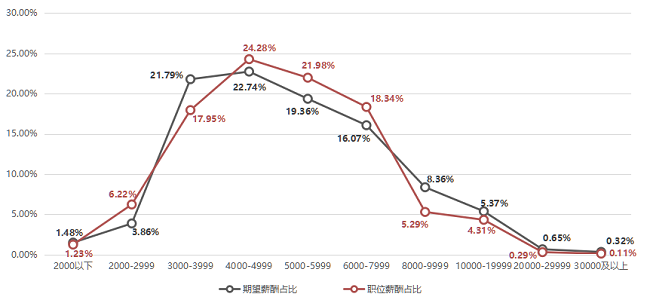 (三)求职者期望薪酬占比整体稳定且集中度较高,10000元以上高收入区间占比整体下降