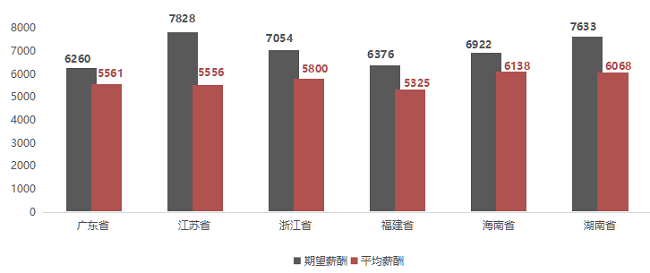 注4:职位平均薪酬指的是所属职位类别中用人单位发布职位的薪酬样本加权平均值,不代表单个职位的实际薪酬,例如高级管理类职位平均薪酬为10798元/月,但其有很多副总以上级别的高薪职位薪酬更高。期望薪酬指的是求职者期望从事职位类别的薪酬样本加权平均值。