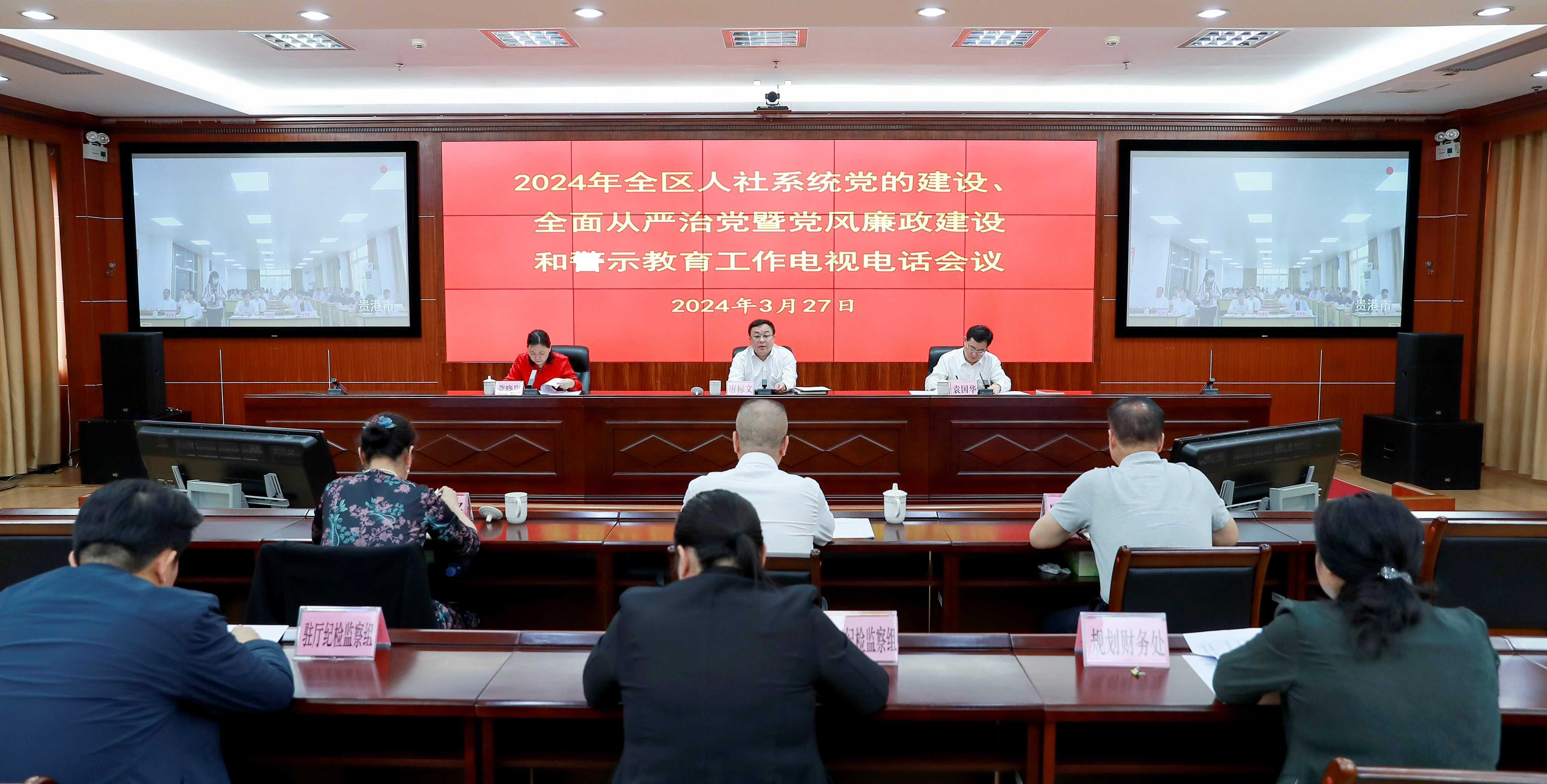 3月27日,自治区人力资源社会保障厅召开2024年全区人社系统党的建设、全面从严治党暨党风廉政建设和警示教育工作电视电话会议。厅党组书记、厅长唐标文出席会议并讲话,厅党组副书记、副厅长袁国华主持会议并通报社会保险领域典型贪腐案例,自治区纪委监委驻厅纪检监察组组长、厅党组成员蒙晓岚出席会议并就有关工作任务提出具体要求。
