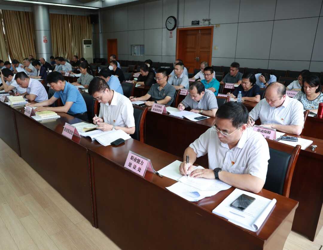 会议强调,要坚持“严”字当头,在学深悟透上持续发力。不折不扣抓好习近平总书记对主题教育的重要要求和最新系列重要讲话精神以及中央指定的8种学习材料的学习,坚持以学铸魂、以学增智、以学正风、以学促干,持续做好学习贯彻习近平新时代中国特色社会主义思想的深化、内化、转化工作,更好地用以武装头脑、指导实践、推动工作。注意在学习贯彻过程中悟规律、明方向、学方法、增智慧,客观辩证、全面科学研判形势,既找准涉及人社工作的问题症结,又用系统性、战略性、全局性的眼光看待问题、找准定位,坚定信心决心,采取有力措施改进工作,助力我区打好稳增长攻坚战。