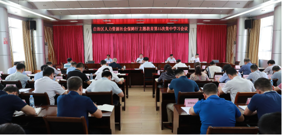 8月3日,自治区人力资源社会保障厅召开学习贯彻习近平新时代中国特色社会主义思想主题教育第15次集中学习会议。厅党组书记、厅长唐标文作学习总结。厅党组副书记、副厅长袁国华,厅党组成员、副厅长覃朝俊先后领学并谈心得体会。