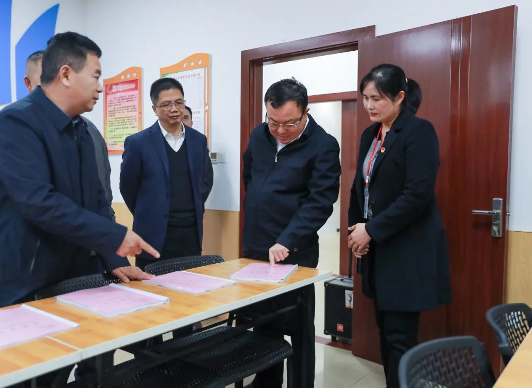唐标文(右二)在柳州市柳南区红桥社区调研社区公共就业服务工作