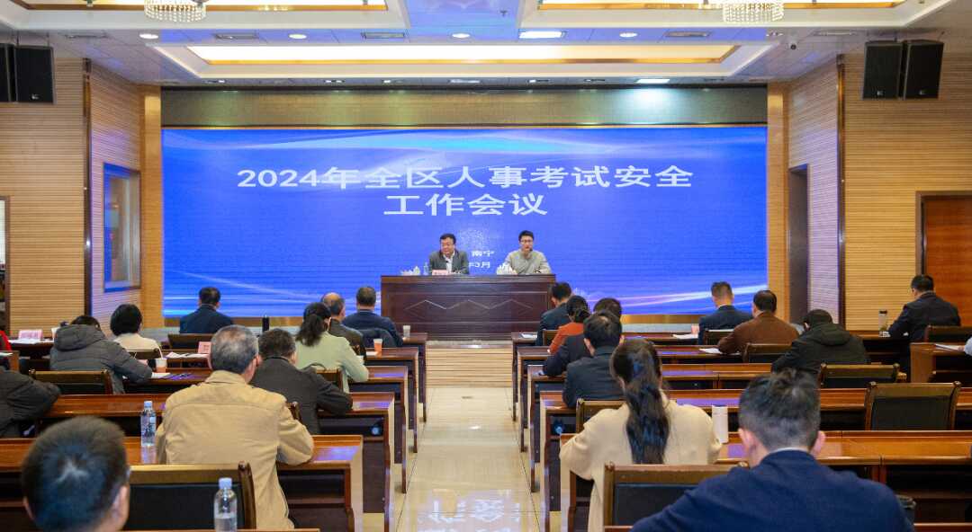 会议深入分析了当前全区人事考试安全形势,对做好2024年人事考试工作作出部署。今年人事考试工作的总体要求是:坚持以习近平新时代中国特色社会主义思想为指导,全面贯彻落实党的二十大和二十届二中全会精神,深入学习贯彻习近平总书记关于做好新时代人才工作的重要思想和习近平总书记对广西重大方略要求,落实全国全区人社工作会议精神,加强人事考试“两化两力”建设,切实做好人事考试风险防范工作,确保全区人事考试安全,助力实施人才强桂战略,为奋力谱写中国式现代化广西篇章提供更加有力的人才支撑。