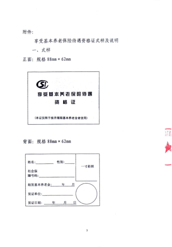 附件:享受基本养老保险待遇资格证式样及说明