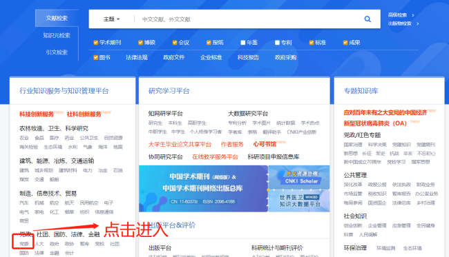 2.《党建期刊文献数据库》。主要包含网上党校、工作指导、党刊分类、党刊大数据等内容,网址:http://dangjian.cnki.net/kweb/cjfx