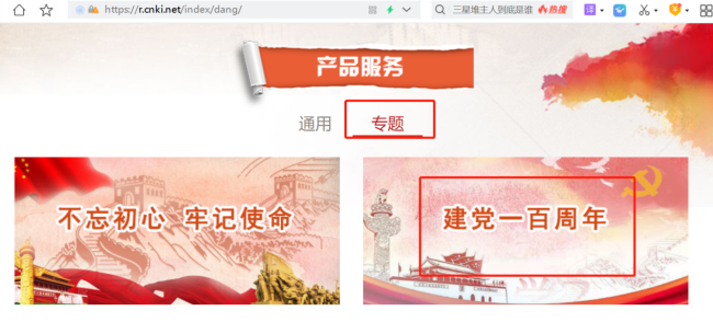 4.《庆祝中国共产党成立100周年专题数据库》。主要包含庆祝活动、光辉历程、辉煌成就、宝贵经验、历史使命、光明未来等内容。网址:https://dysw.cnki.net/jdyb/