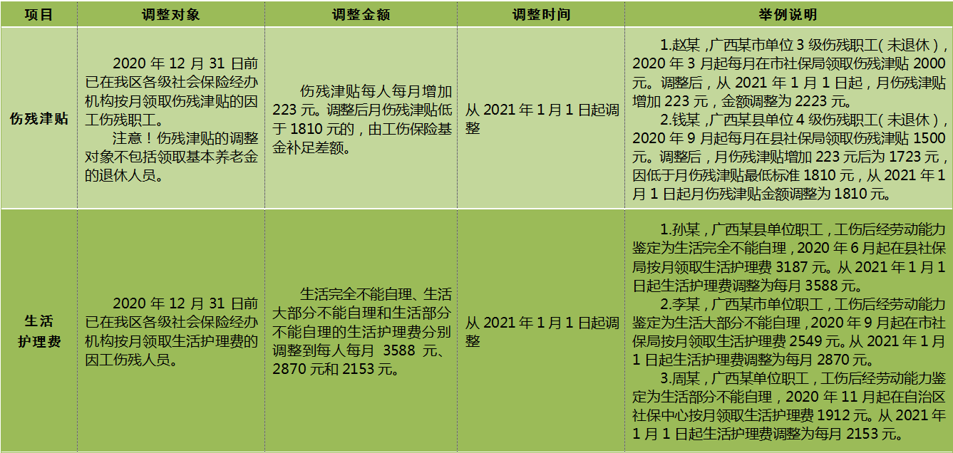 【表格】一张表看懂广西2021年工伤保险待遇调整