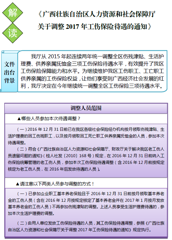 【图表】关于《广西壮族自治区人力资源和社会保障厅关于调整2017年工伤保险待遇的通知》的政策解读